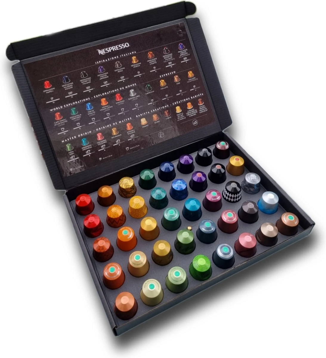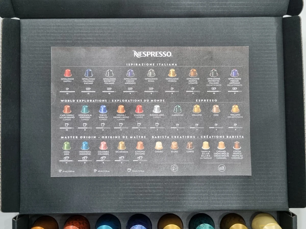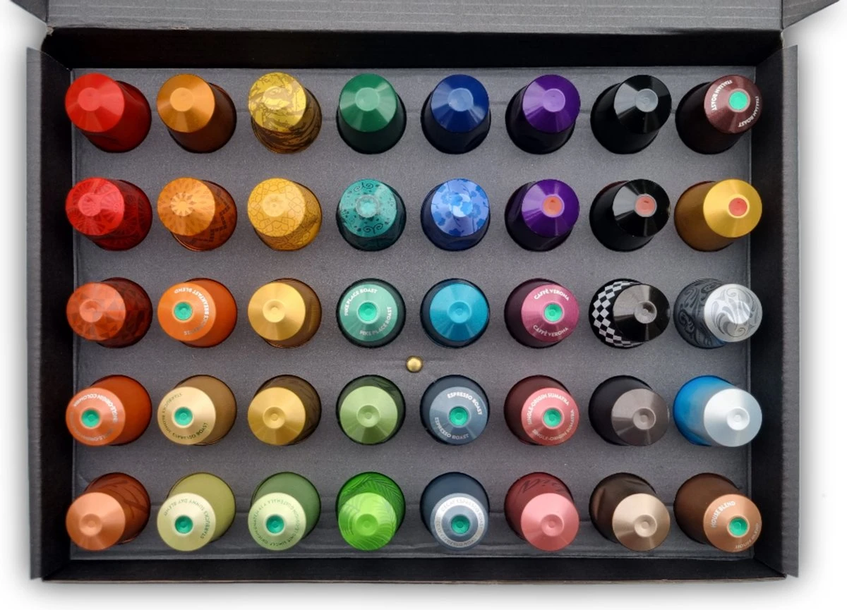 Uit het gehele assortiment koffiecapsules hebben we maar liefst 40 smaken gekozen, deze kunnen per bestelling verschillen. Zo heb je de mogelijkheid om zonder dat je gelijk een grote verpakking hoeft te kopen eens een andere smaak te proberen. En het is natuurlijk een leuk kado om te krijgen en te geven.